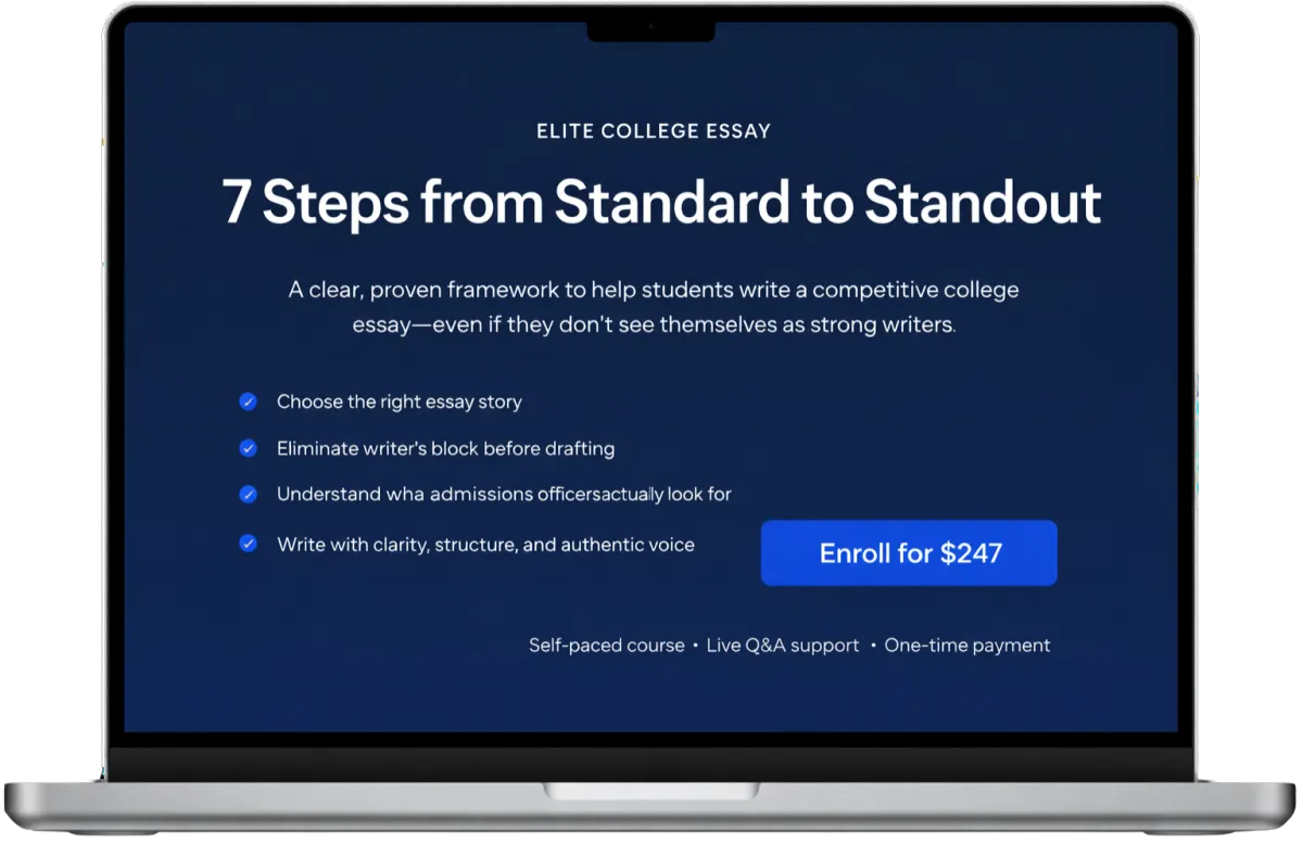 Walk step-by-step from blank page to polished, admissions-ready essay with self-paced videos, tools, and coaching.